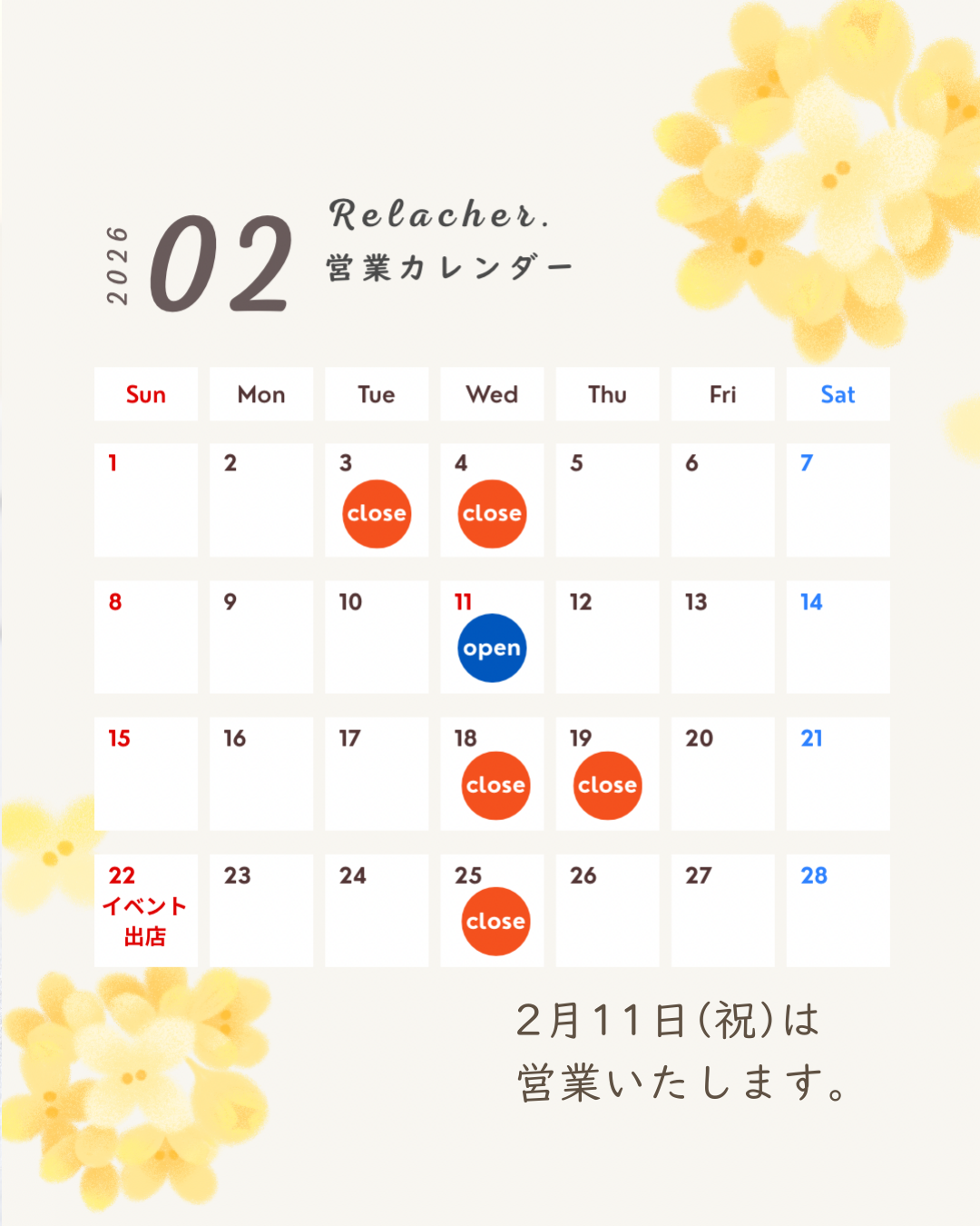 2月の営業カレンダーです!